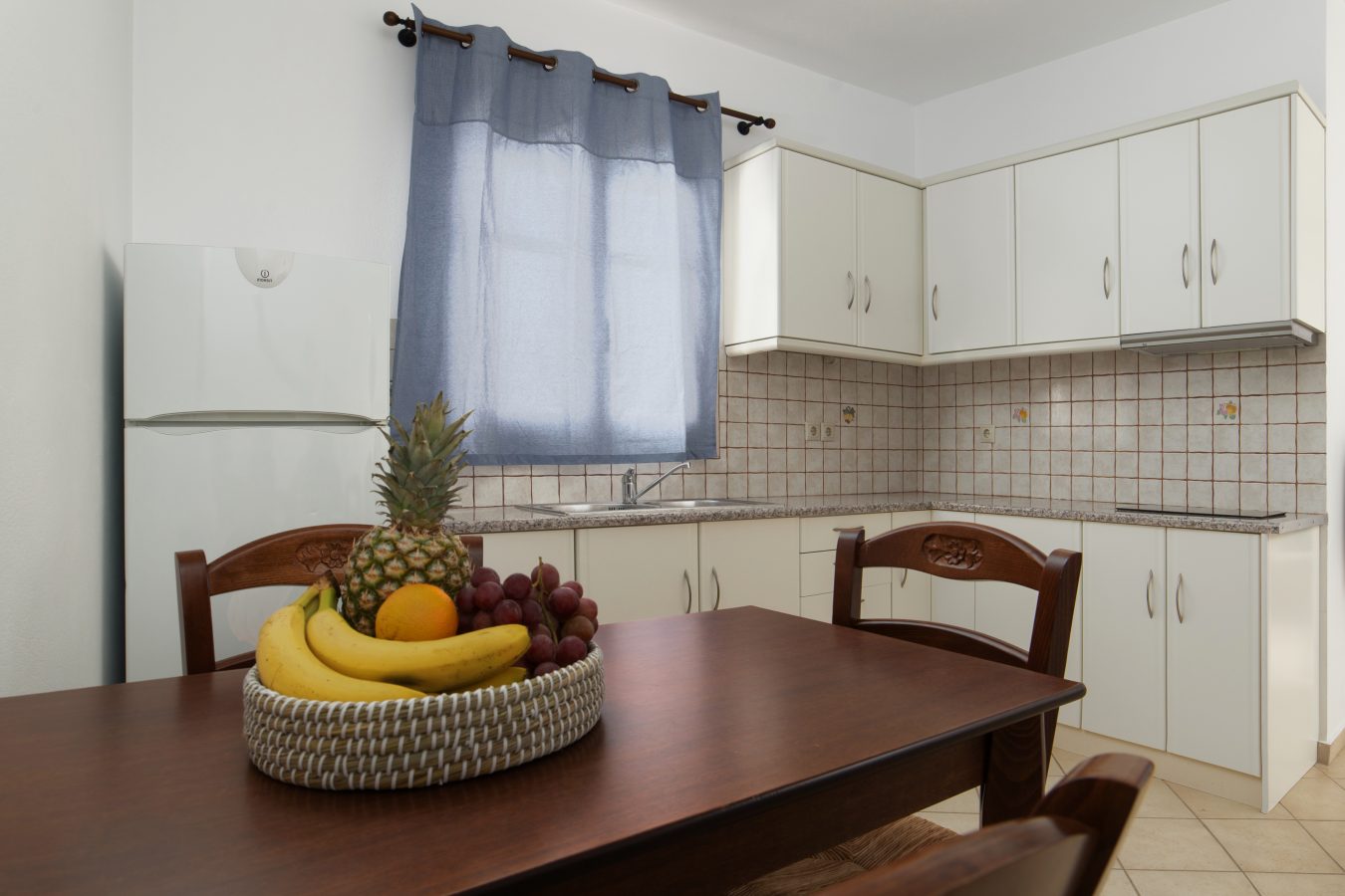 It consists of a separate bedroom, a living-room with sofas that turn into beds and a fully equipped kitchen. Moreover, the apartment has a security door, reclining windows, traditional furnishing, 2 A/Cs, television, Internet and private balcony giving visitors the opportunity to enjoy the panoramic view of the blue sea.